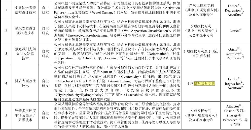 招股书还显示,艾柯医疗有6项核心技术,如支架输送系统结构设计技术、激光雕刻支架设计及制造技术等,并且列示了6项技术的技术先进性及具体表征,但没有用具体的数据来证明比同行公司具备哪些明显的技术优势。
