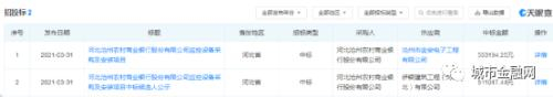 4月6日,沧州农商行发布中标公告,侨银建筑工程(河北)有限公司以51.1万元中标,工期交付日为15天。