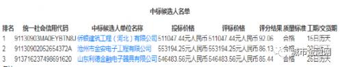 从投标价格和工期来看,上述3家中标候选人均有所不同。侨银建筑工程(河北)有限公司、沧州市金安电子工程有限公司和山东利德金融电子器具有限公司的投标价格分别为51.1万元、55.3万元和54.6万元,工期分别为15天、20天和25天。