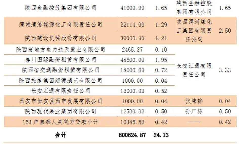 从今年数据来看,秦农农商行已发布多起重大关联交易公告,全部关联方的授信余额超过100亿元。