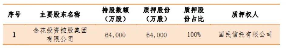 其中,金花投资控股集团持有秦农农商行7.25%的股份,是秦农农商行的主要股东。至2022年末,秦农农商行股东质押股份数合计 105,200 万股,其中主要股东质押股份数合计 64,000 万股,情况如下: