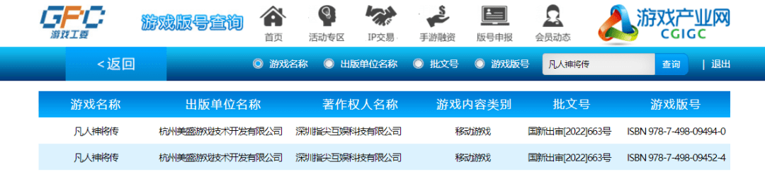 “我要修仙”不仅虚假宣传欺骗玩家,甚至涉及违法运营。该游戏界面内的版号信息显示著作权人是深圳指尖互娱,游戏版号为ISBN 978-7-498-09494-0。根据版号信息,我们在中国音数协游戏工委官网查询到的却是一款名为“凡人神将传”的手游,版号与“我要修仙”游戏名称不匹配。