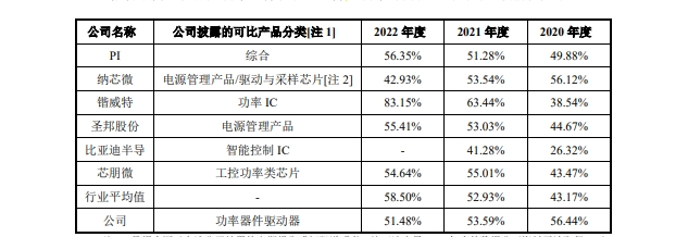 然而,与突出的营业收入成绩相比,近两年主营业务的毛利率却在逐年下降。报告期内,公司的主营业务毛利率分别为56.61%、52.40%和48.53%。2021-2022年两年连续下降。其中功率器件驱动器毛利率分别为56.44%、53.59%和51.48%,作为核心业务同样是两年连续下降。