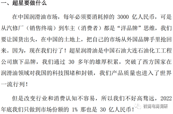 民营润滑油企业想要拓宽市场渠道、提升品牌价值其实更需要的是满足日渐严苛的消费者需求,避免产品同质化,升级产品质量才是获得市场的保障。而且在大品牌润滑油占有较大市场的情况下,想要通过诱人的奖励制度拓展市场似乎是行不通的。至于“立志打造中国民族品牌的高端润滑油”的超星科技未来会如何发展?对此,微商电商调研将继续保持关注。