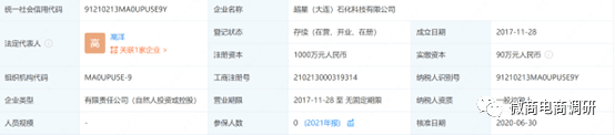 据企查查显示,超星(大连)石化科技有限公司成立于2017年11月28日,法定代表人为高洋,注册资本为1000万元,实缴资本90万元,参保人数0人。