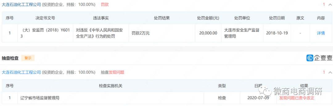 但是,中国石油大连石油化工有限公司自身风险不断,该公司也曾受到行政处罚及在抽查检查中发现问题。