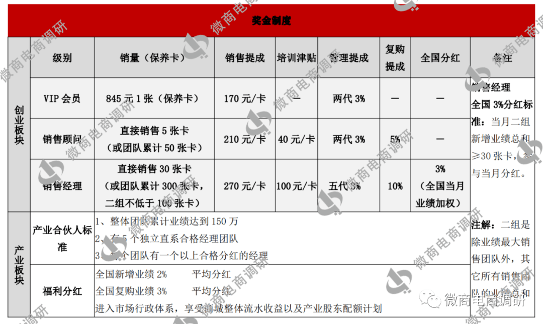 产业合伙人标准:团队业绩累计达到150万元,5个直属团队有分红经理,即可成为产业合伙人,获得全国当月新增营业额的2%平均分红和全国当月复购营业额的3%平均分红。