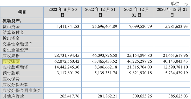 招股书显示,2020 年-2023 年6月末,金则利应收账款账面价值分别为4,014.30万元、4,622.53万元、6,346.54万元和6,207.26万元,占公司总资产的比例分别为17.58%、17.83%、20.01%和20.19%,占比较高。