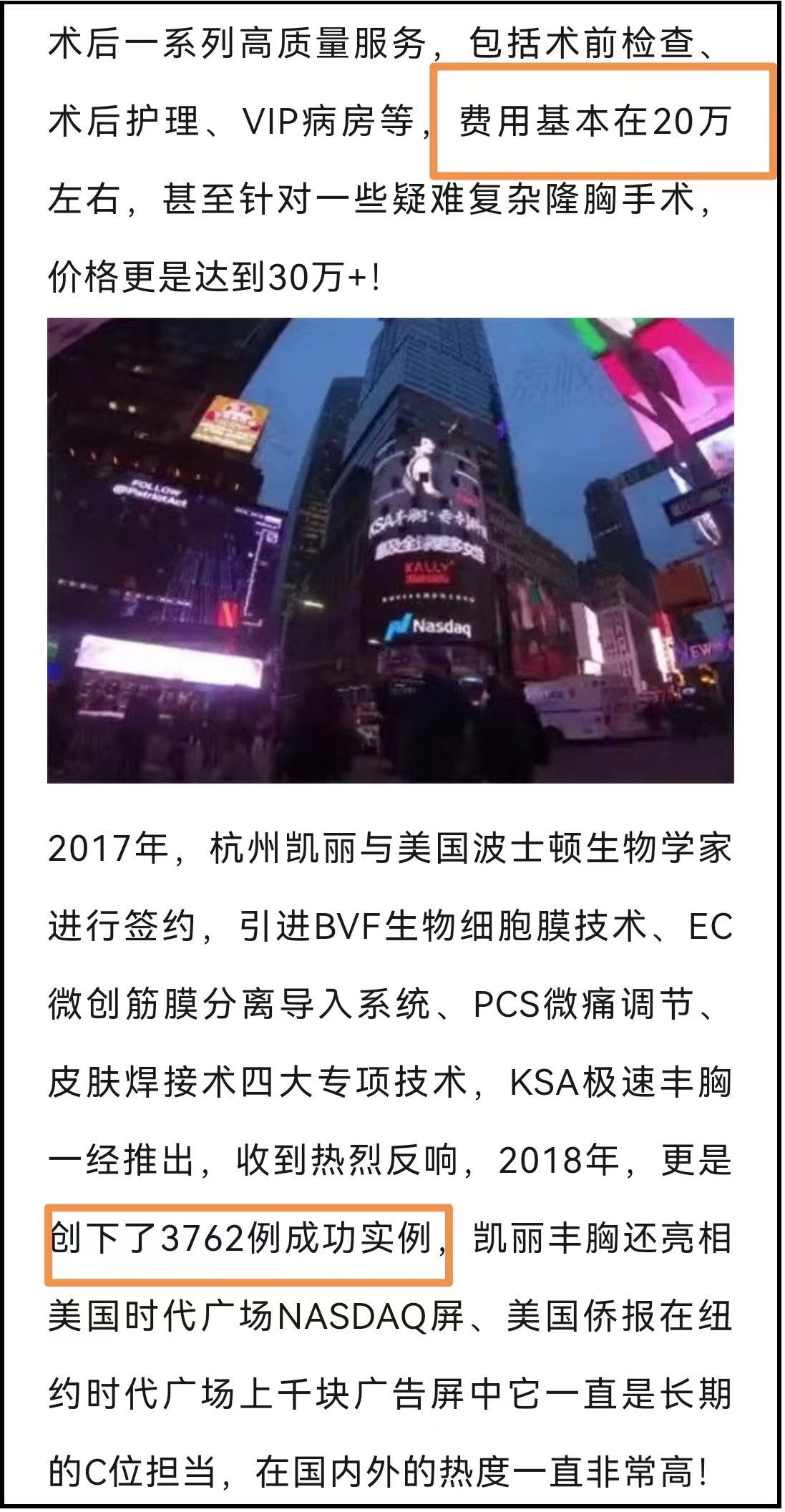 杭州凯丽自称2017年与美国波士顿生物学家进行签约,引进BVF生物细胞膜技术、EC微创筋膜分离导入系统、PCS微痛调节、皮肤焊接术四大专项技术,KSA极速丰胸一经推出,收到热烈反响,2018年,更是创下了3762例成功实例,是全国做丰胸手术最多的医美整形医院。