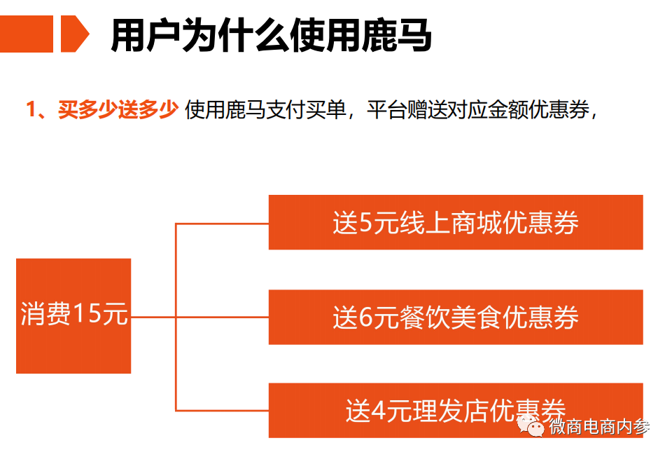 2. 用户每在鹿马消费一笔,平台就推送相等金额的满减优惠券,即相同消费金额的线上以及相同消费金额的线下其他联盟商家满减优惠券。