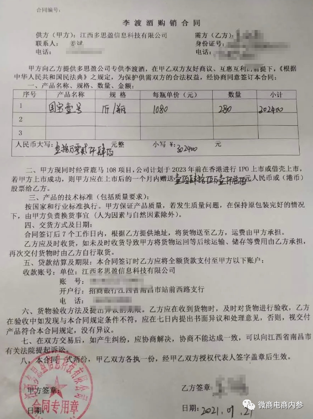 据“国邦财经”报道,具体的《李渡酒购销合同》如下: