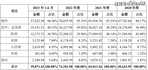 《发现•华网》翻阅招股书发现,造成业绩表现不稳定的重要原因是因为美新科技是一家严重依赖外销的公司。报告期内,公司主营业务境外销售收入占比均超九成,公司境外销售地区中以欧美市场为主,遍布美国、法国、英国、韩国、日本等全球众多国家或地区。