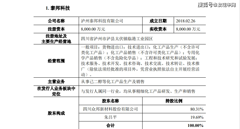 众邦股份的子公司亦是如此。泸州泰邦科技有限公司(简称:泰邦科技)是众邦股份的控股子公司之一,它与众邦股份属同一行业,均从事精细化工产品研发、生产和销售。