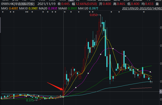 接下来的一年时间里,华音国际股价在0.3港元/股-0.6港元/股之间浮动。2021年4月,公司名称改为华音国际。直到2021年11月26日,隋广义出任华音国际联席主席,上市公司股价再次提前异动,从11月初的0.4港元/股摸高至12月底的0.85港元/股。