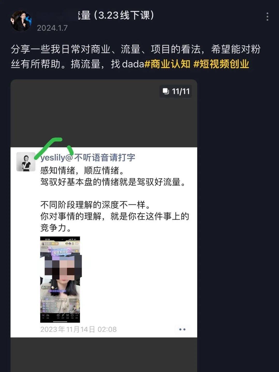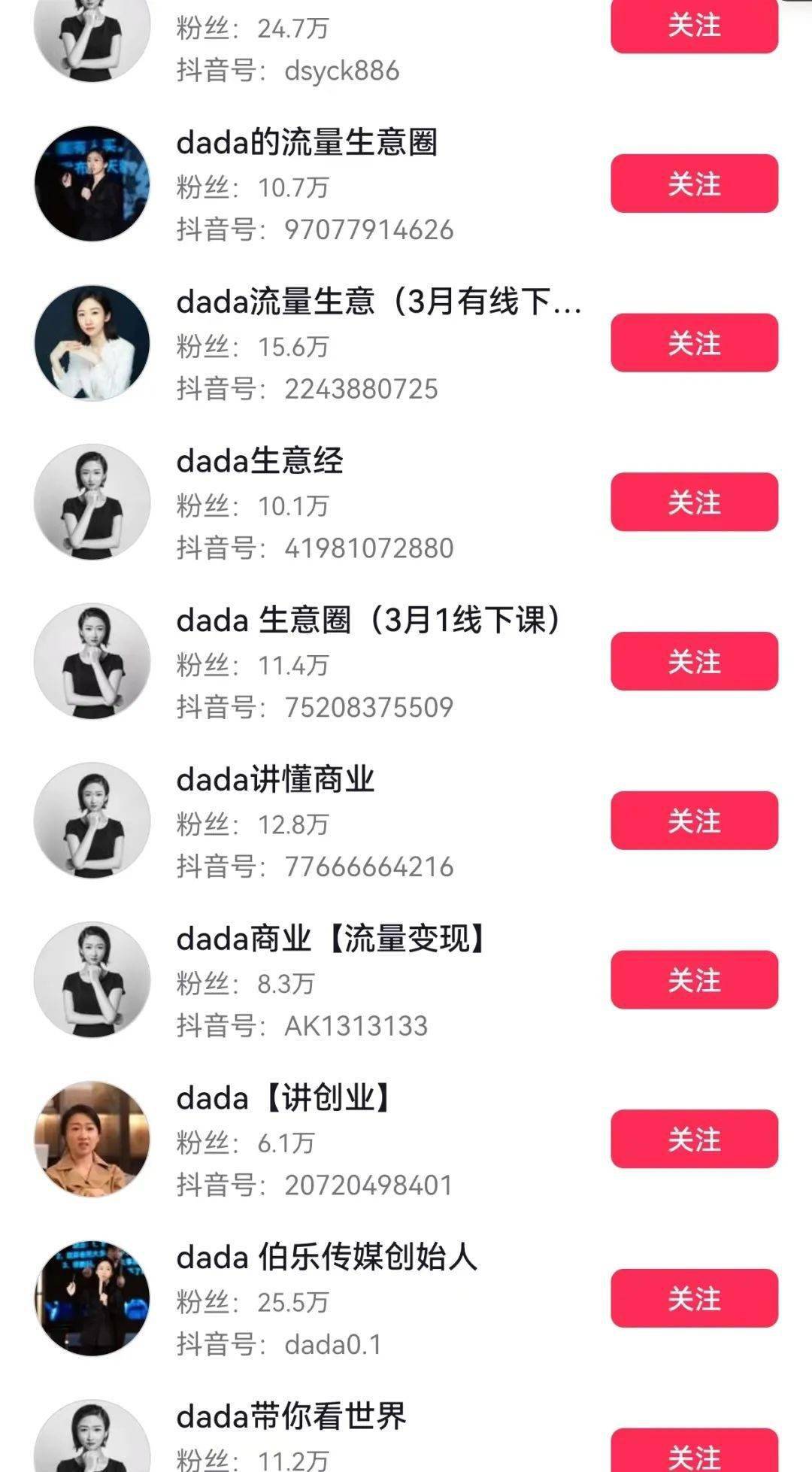 其实dada也是近几年开始,在短视频平台上做知识付费内容,卖课宣传如何流量变现的。笔者调查发现,dada最早是做微商起家的。