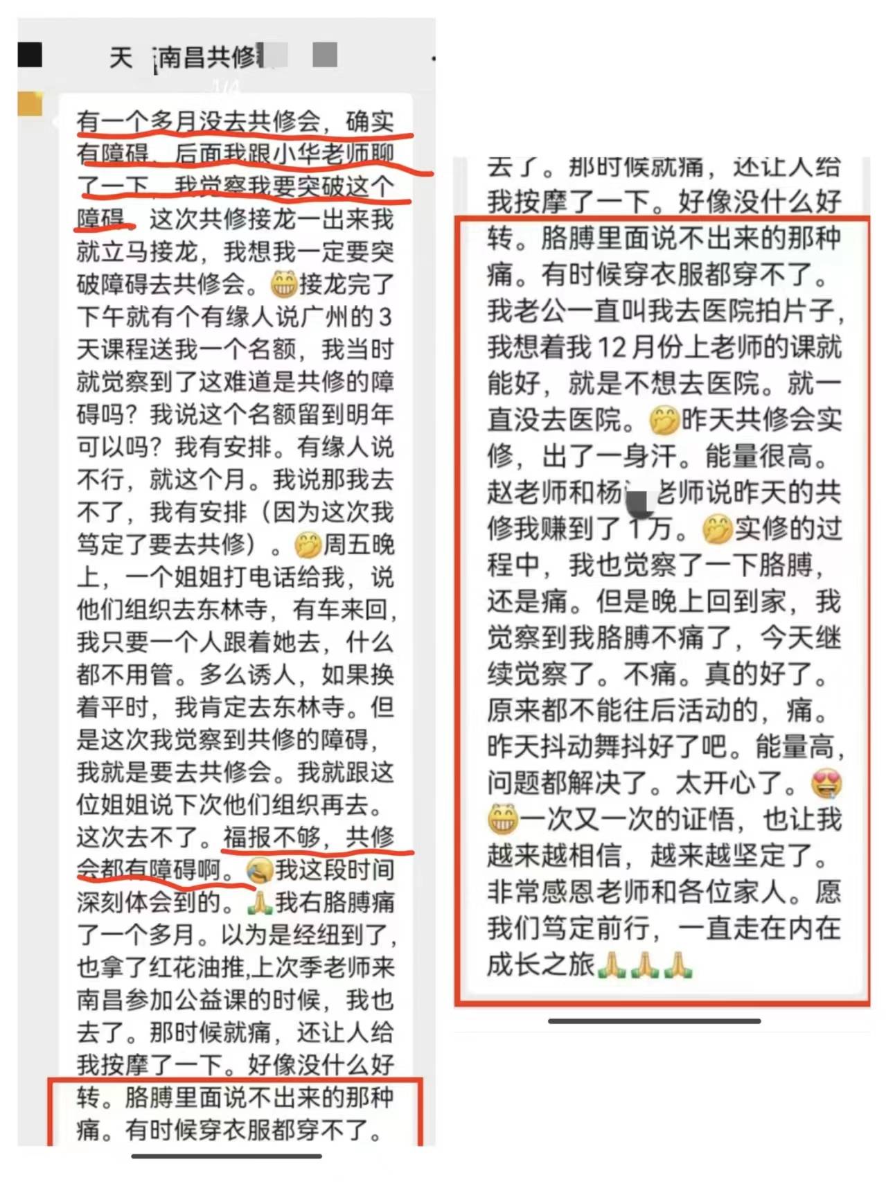 就这样,念咒、深入、布施、感召分享……一套流程层层递进,无非还是想让学员们心甘情愿带人来上课,收取高额费用,以此敛财。