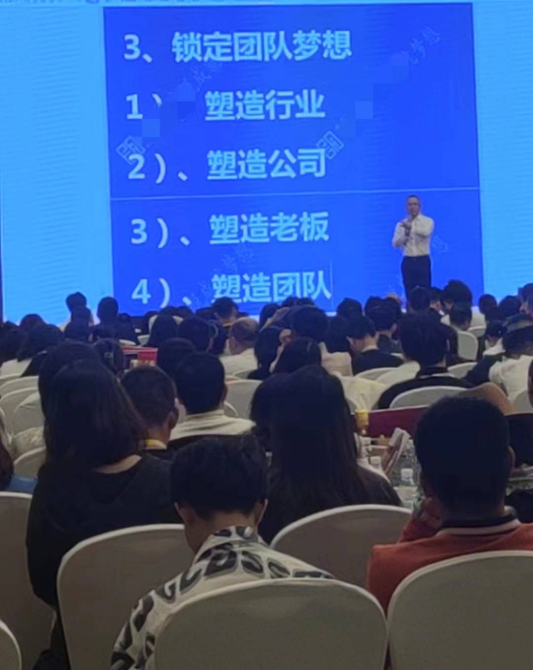 另一个与之类似的有害培训——“总裁某某思维”演讲也是如此这般。有学员爆料该课程以建立团队、塑造老板为噱头,经常开设各种演讲大会。