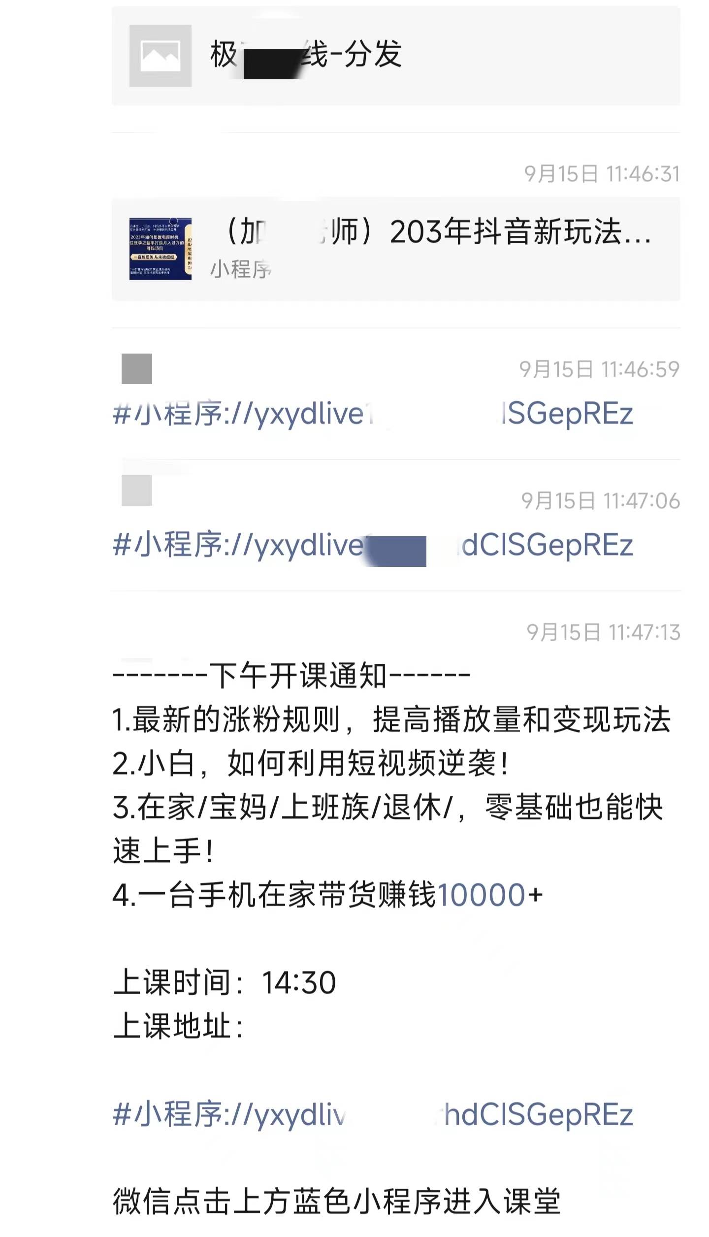 去年9月,韩女士偶然了解到“创某达”抖音公司,一位号称是“邓某林学院”关门弟子的木木老师打电话告诉韩女士可以加入他们的学习群免费听课,学习“中视频带货”。