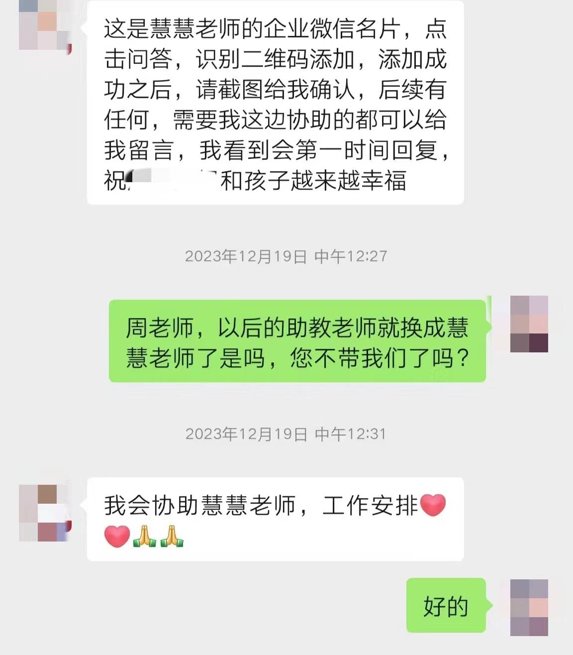 收到学费后,周先生便被推送给另一位老师继续课程。