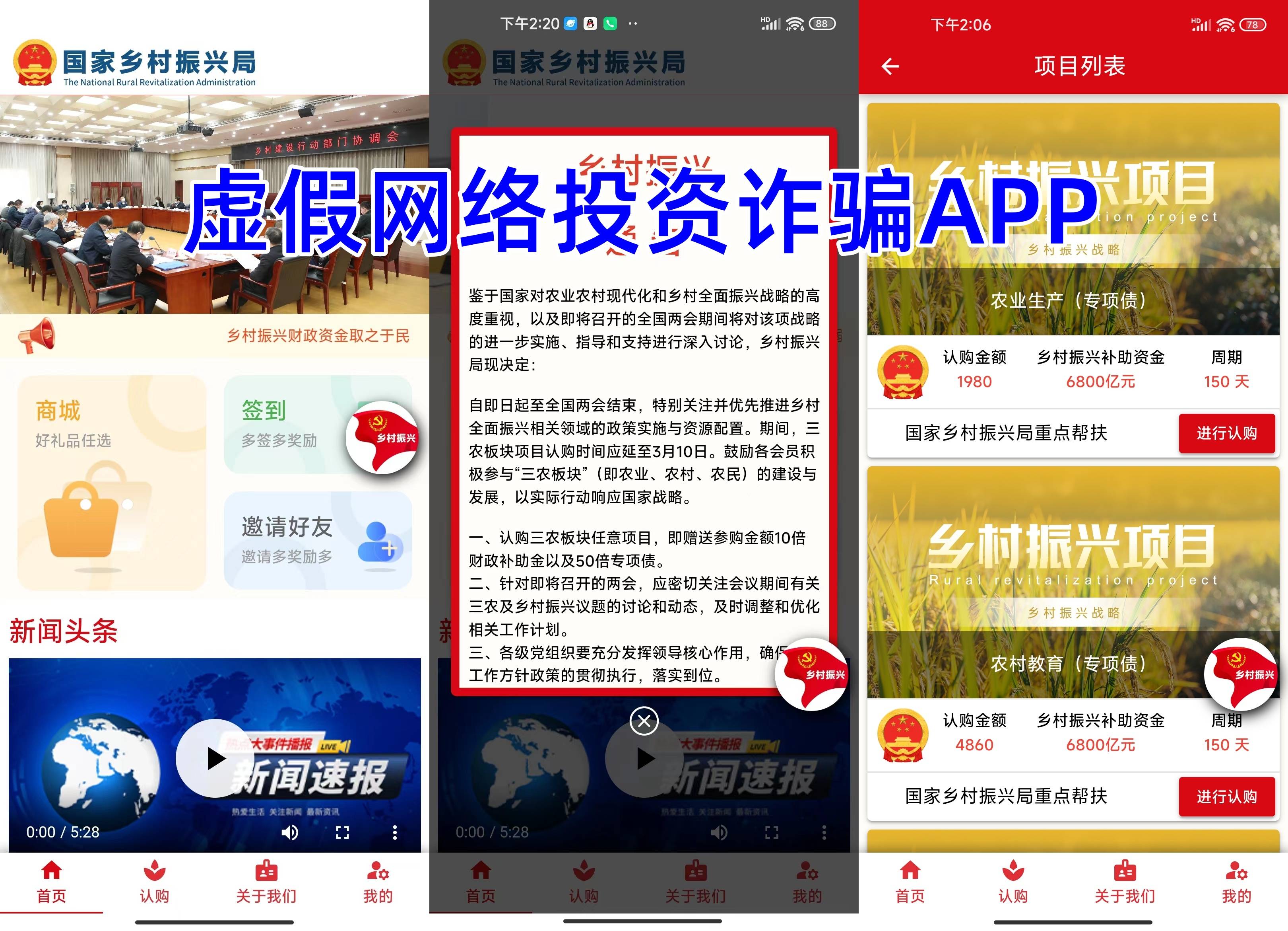 警惕提醒:“乡村振兴”APP是一款虚假网络投资诈骗软件