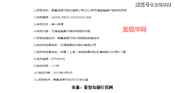 官网还显示,秦皇岛银行去年3月发布了“2023年度万得金融客户端项目”招标公告,成交金额87.5万元。Wind终端是诸多金融机构、特别是偏重固收信贷相关用途的银行的必备工具,当然价格较高。今年初,Wind系统宕机长达一天左右,影响到不少金融机构。同花顺iFinD等工具借此机会以低价、稳定的卖点抢走不少Wind客户。横向对比,唐山银行2023年12月采购了金融市场数据服务,中标机构是南京万得资讯科技有限公司、中标价53万元,低于秦皇岛银行的采购价。