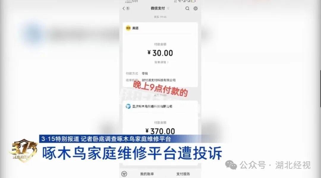 湖北经视热线87311111、武汉城市留言板收到大量消费者投诉称,啄木鸟家庭维修存在“小病大修、收费不透明、价格虚高、质保困难”等问题。