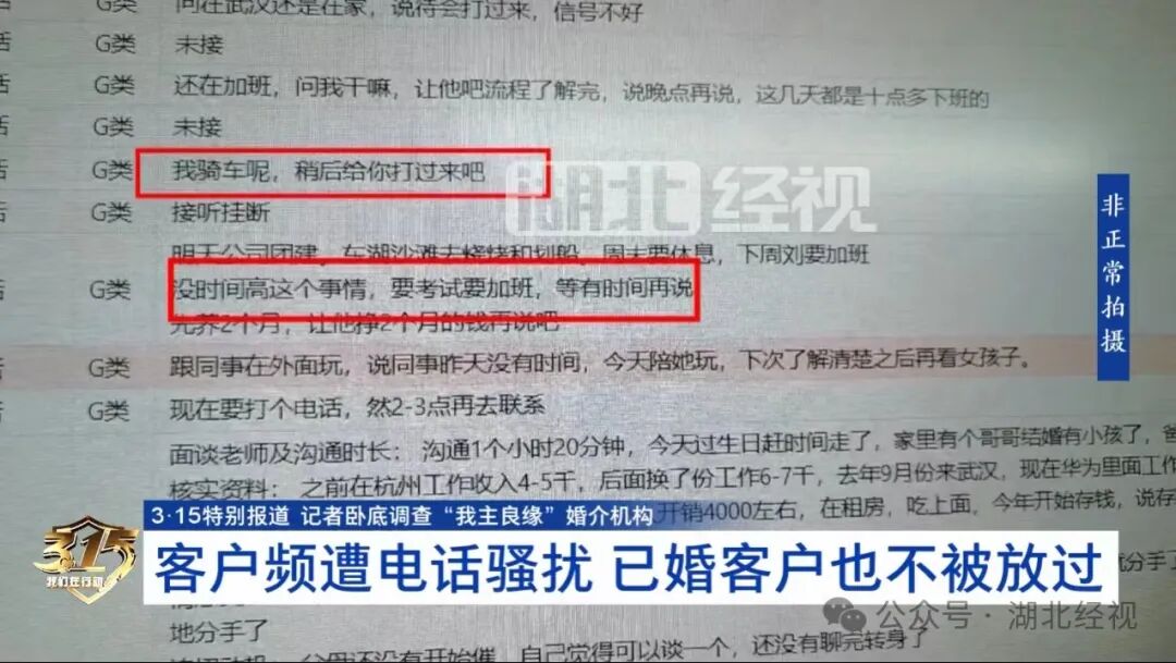 甚至有位客户的“跟进小记”中注明“已经结婚了”,但此后其他红娘销售顾问,仍然先后六次拨打了他的电话。