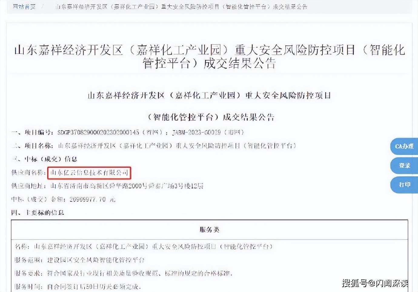 近日,山东嘉祥经济开发区(嘉祥化工产业园)重大安全风险防控项目招投标过程引发公众关注。该项目总招标金额达到2724.36万元,由山东亿云信息技术有限公司以接近预算上限的价格中标,然而中标结果背后的“巧合”却让人生疑。