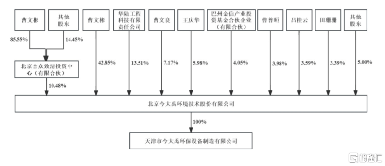 股权结构方面,招股书显示,曹文彬直接持有今大禹42.85%股份,通过合众致清间接控制今大禹10.48%的股份,合计控制公司53.33%的股份;田珊珊直接持有今大禹3.39%股份;曹普晅直接持有今大禹3.98%股份;三人合计控制公司60.70%的股份。其中曹文彬与田珊珊系夫妻关系,曹文彬与曹普晅系父子关系,田珊珊与曹普晅系继母子关系,三人为一致行动人。