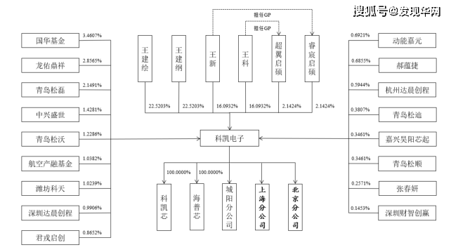 股权结构方面,科凯电子带有浓烈的家族企业色彩。王建绘、王建纲、王新和王科4人为科凯电子的实控人,4人系亲属关系,其中王建绘与王建纲系兄弟关系,王建绘与王新系父女关系,王建纲与王科系父子关系。截至招股说明书签署日,王建绘、王建纲、王新和王科分别直接持有公司22.5203%、22.5203%、16.0932%和16.0932%的股份,合计持有公司77.227%的股份。
