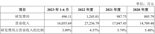 招股书显示,报告期内,科凯电子研发费用分别约为805.79万元、987.75万元、1245.01万元、496.11万元,占各期营业收入的比例分别为5.48%、5.79%、4.57%、3.09%,其中研发费用占比整体呈下降趋势。