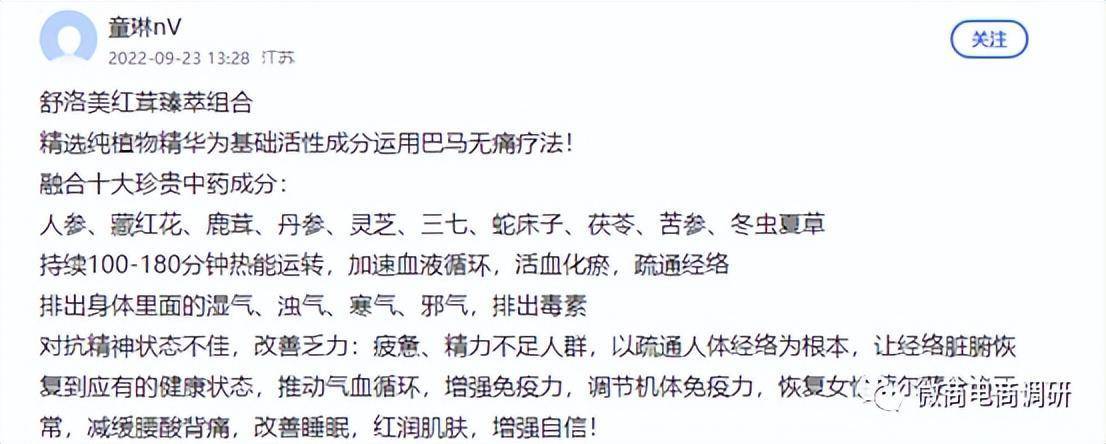 在经销商的介绍下,舒洛美的功效堪称神奇:“持续100到180分钟热能运转,加速血液循环,活血化瘀,疏通经络。排出身体里面的湿气、浊气、寒气、邪气,排出毒素,对抗精神状态不佳,改善乏力、疲惫、精力不足人群,以疏通人体经络为根本,让经络脏腑恢复到应有的健康状态,推动气血循环,增强免疫力,恢复女性荷尔蒙分泌正常,减缓腰酸背痛,改善睡眠,红润肌肤,增强自信!”