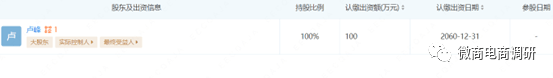据推广人员阿强(化名)介绍,广州希越生物科技有限公司为舒洛美的经营主体,成立于2022年9月6日,法定代表人和独资股东为卢峰,监事为仝琳,注册资本100万元,据企查查显示,该公司股东的认缴出资日期在2060年。