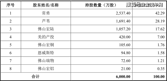 股权结构方面,宏石激光的实控人是常勇、芦苇夫妻俩,二人均是大专学历,常勇直接持有公司2,537.40万股股份,占公司总股本的42.29%,通过员工持股平台佛山宏陆、佛山宏铜、佛山宏铝间接持有公司386.61万股股份,占公司总股本的6.44%。芦苇直接持有公司1,691.40万股股份,占公司总股本的28.19%。合计控股76.92%。而美的旗下的投资公司也在去年出资3.38亿元,占比7%,成为公司第4大股东。