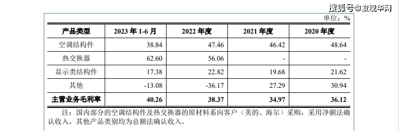 值得一提的是,报告期内,宏海科技主营产品之一空调结构件产品的毛利率分别为48.64%、46.42%、47.46%、38.84%,2023年上半年的毛利率出现了近9个百分点的下降幅度,而空调结构件基本上是销往美的集团及海尔集团的。