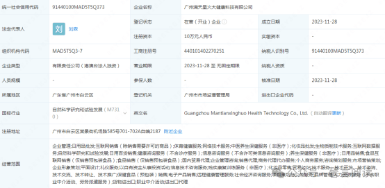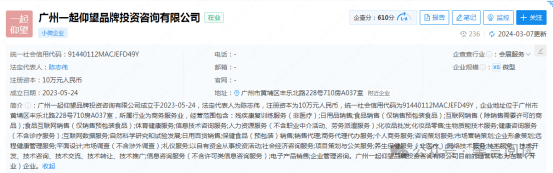 但是该公司法定代表人谢翎芸同时还在广州一起仰望品牌投资咨询有限公司、广州脚踏实地品牌管理有限公司、橙色星空(广州)大健康科技有限公司(已于2023年10月7日注销)担任职务。接下来我们更深入的了解一下企业目前关联且在营的族群。