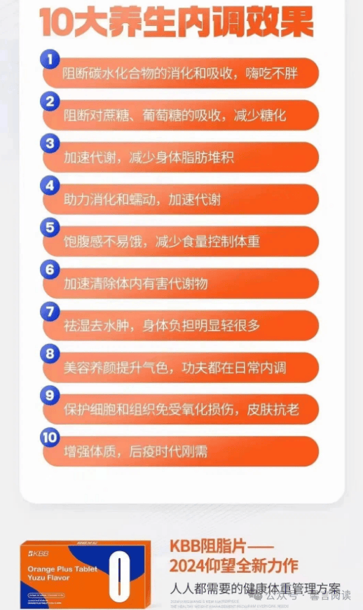 KBB阻脂片的宣传也非常神奇,具有多个内调效果,加速代谢、加速清除体内有害代谢物、祛湿去水肿、美容养颜等等。