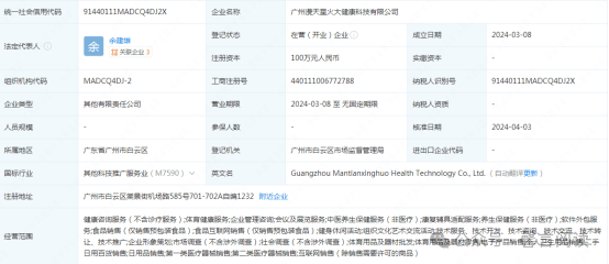 通过企查查公示系统查询后发现,广州漫天星火大健康科技有限公司成立于2024年3月8日,法定代表人余建雄,石学峰为监事,大股东为广州至清大健康科技有限公司,青岛梦幻奇经商贸有限公司持股49%。