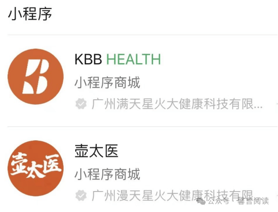 通过搜索微信小程序KBB HEALTH,一家名为“壶太医”的小程序映入眼帘,“壶太医”与“KBB HEALTH”这两个小程的内容以及公司认证主体颇为相似。