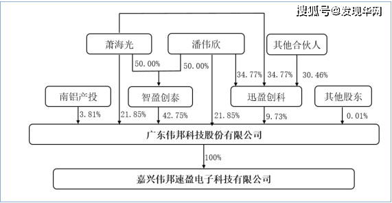 按照招股书,伟邦科技是由两名大学同学携手创办。2004年6月,伟邦科技的前身佛山市伟邦电子科技有限公司(以下称“伟邦有限”)由潘伟欣、萧海光一手创建。彼时,二人各出资50万元,各持股50%。