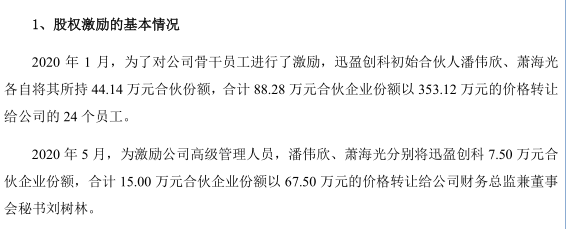 迅盈创科入股后,2020年1月,伟邦科技通过其对公司员工进行了激励。截至此次递表前,包括潘伟欣、萧海光在内,迅盈创科共有31位合伙人,均为伟邦科技的员工。而其中,有三人不仅是伟邦科技的员工,还是潘伟欣的亲戚。
