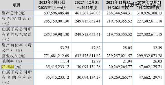 业绩方面,按照招股书所示,2020年-2023年上半年,天盛股份分别实现营业收入为3亿元、2.39亿元、6.32亿元及7.72亿元;取得净利润分别为4766.21万元、2026.93万元、3009.41万元及3541.52万元。