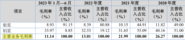 对此,天盛股份在招股书中解释称,公司主营业务毛利率主要受产品结构、产品销售价格、规模效应等因素影响,若未来公司产品结构中银浆业务占比继续上升,抑或是产品结构虽未发生重大变化,但出现公司议价能力下降、行业景气度下降导致生产规模下降等不利情形,公司将面临毛利率下降的风险,进而对盈利能力产生不利影响。