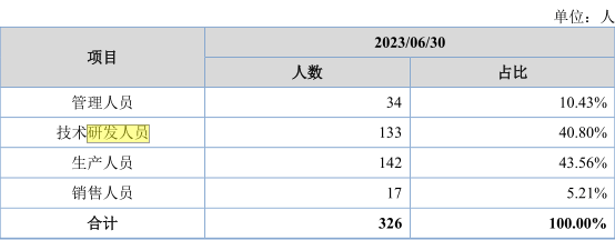 按照招股书所示,截至2023年6月30日,天盛股份共有技术研发人员133人,占公司总人数的40.8%。由此进行计算可以得出,天盛股份2022年的研发人员薪酬平均为10.4万元,分摊到每月来看,研发人员的人均月薪不足1万元,这一标准同样在行业中并不出色。
