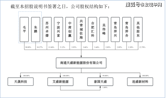 股权结构方面,《发现•华网》翻阅招股书发现,天盛股份成立之初由南通光伏、赵友智、毛平、陈卫明、朱鹏、马黎分别持有25%、15%、15%、15%、15%、15%的股权。公司初设时,实缴资本仅有400万元,其中,赵友智、陈卫明分别实缴300万元、100万元。