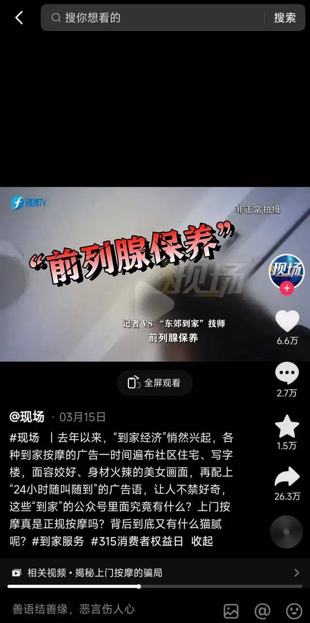 然而,作为全国最大的上门按摩平台之一,东郊到家也是媒体重点报道的对象。据海博TV(福建省广播影视集团旗下客户端)3月15日报道,福州的“东郊到家”“首约到家”“星河到家”“爱尚往约”APP存在“涉黄”问题。夜越深,生意越火爆,技师上门后,在按摩过程中,不仅言语露骨,按摩后还提出可以“加钟服务”。个别技师甚至直言:只要钱到位,啥服务都能做到。