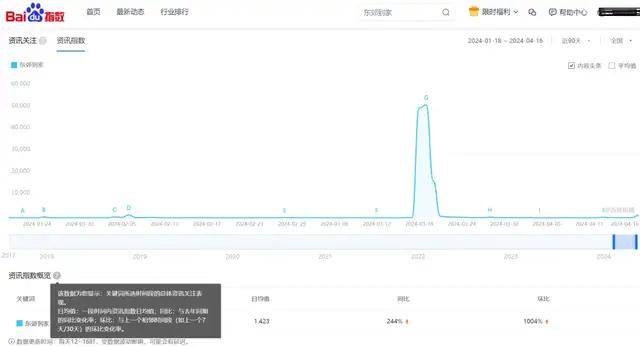 事实上,被媒体315曝光的“东郊到家”反而。百度指数显示,近90天,东郊到家的资讯指数均值为1423,同比增长244%(与去年同期比变化率),环比增长1004%(与上一个90天的环比变化率)。