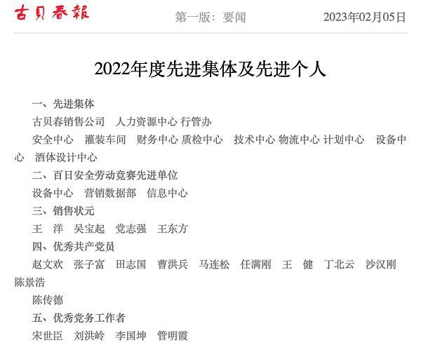 其中李国坤是古贝春集团的在职员工。古贝春集团官方报道显示,李国坤现任古贝春集团计划中心主任,曾任古贝春集团灌装车间副主任,2021年还曾获评“优秀党务工作者”。