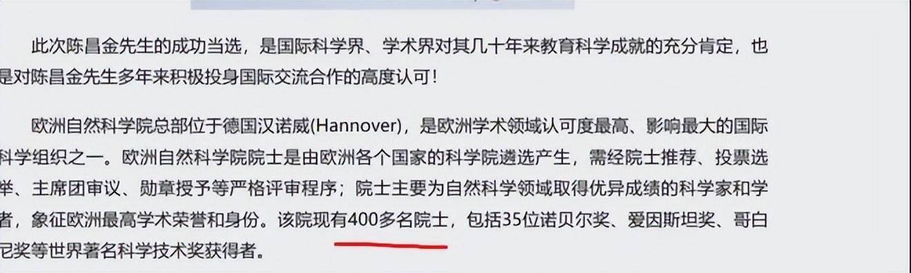 在一众当选院士中,有部分“院士”用来宣传的报道与官方资料口径不一。如青岛恒星集团主席陈昌金先生,都是一个组织,怎么您所在的就只有400名院士?观看对其获评理由,“是国际科学界、学术界对其几十年来教育科学成就的充分肯定,也是对陈昌金先生多年来积极投身国际交流合作的高度认可”,并未提到其有多少学术成就。