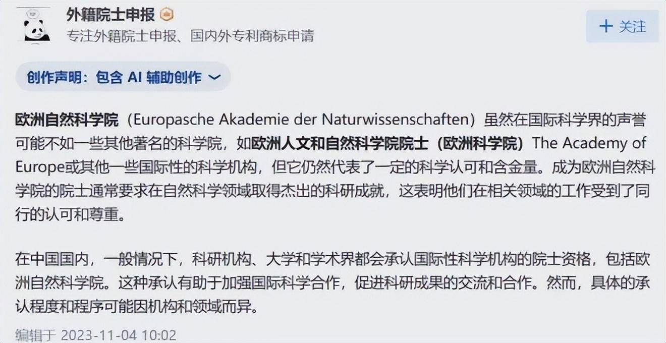 颇具讽刺的是,就在笔者搜索欧洲自然科学院的介绍时,还能发现某申请机构的回应。事实上,此前就有媒体报道过,有中国教授收到欧洲自然科学院邀请函,有意加入,但却被告知需要缴纳40万元。